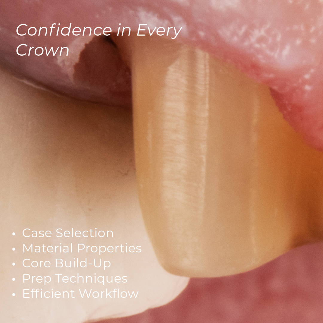 - Impression/scanning techniques that guarantee the lab gets the perfect crown every time.